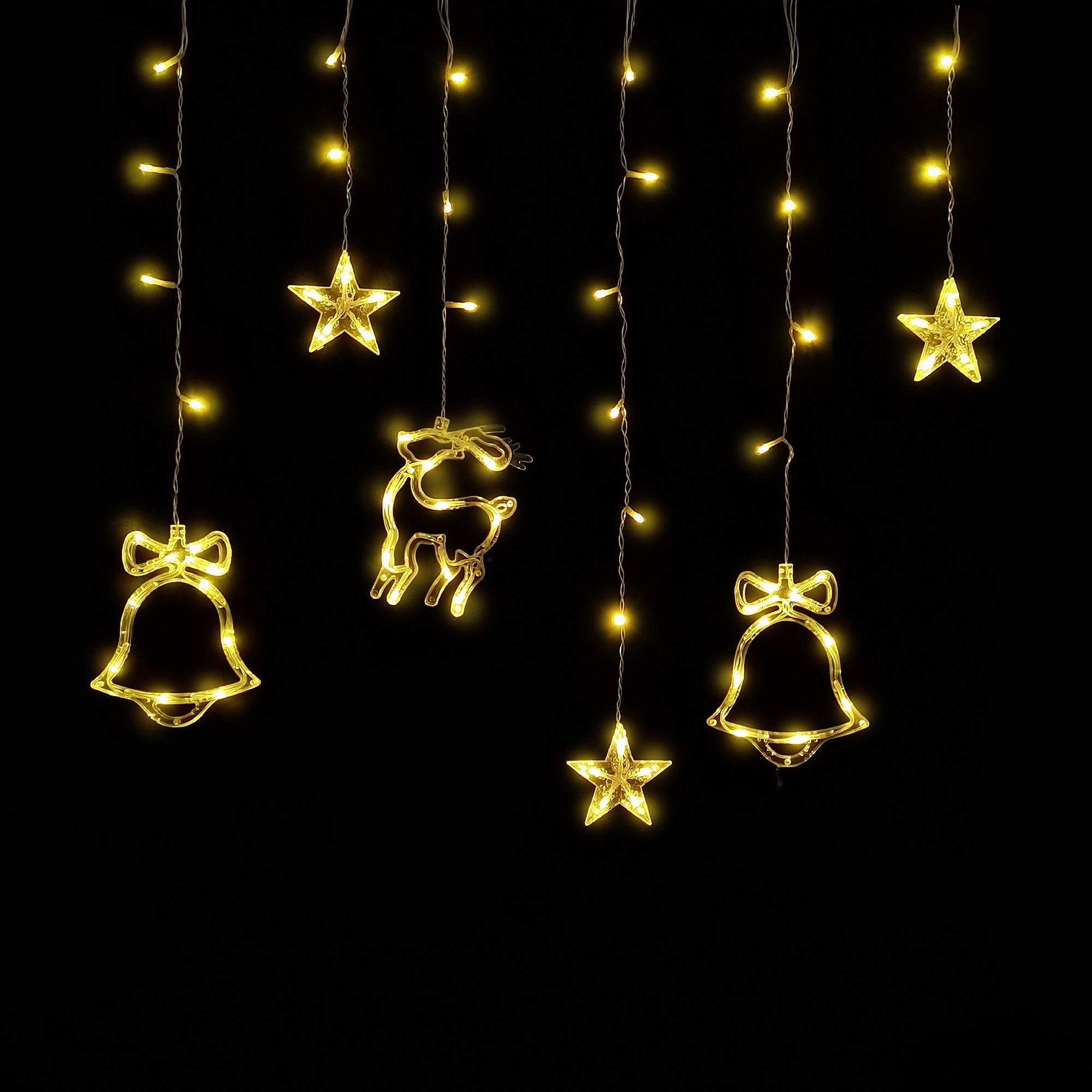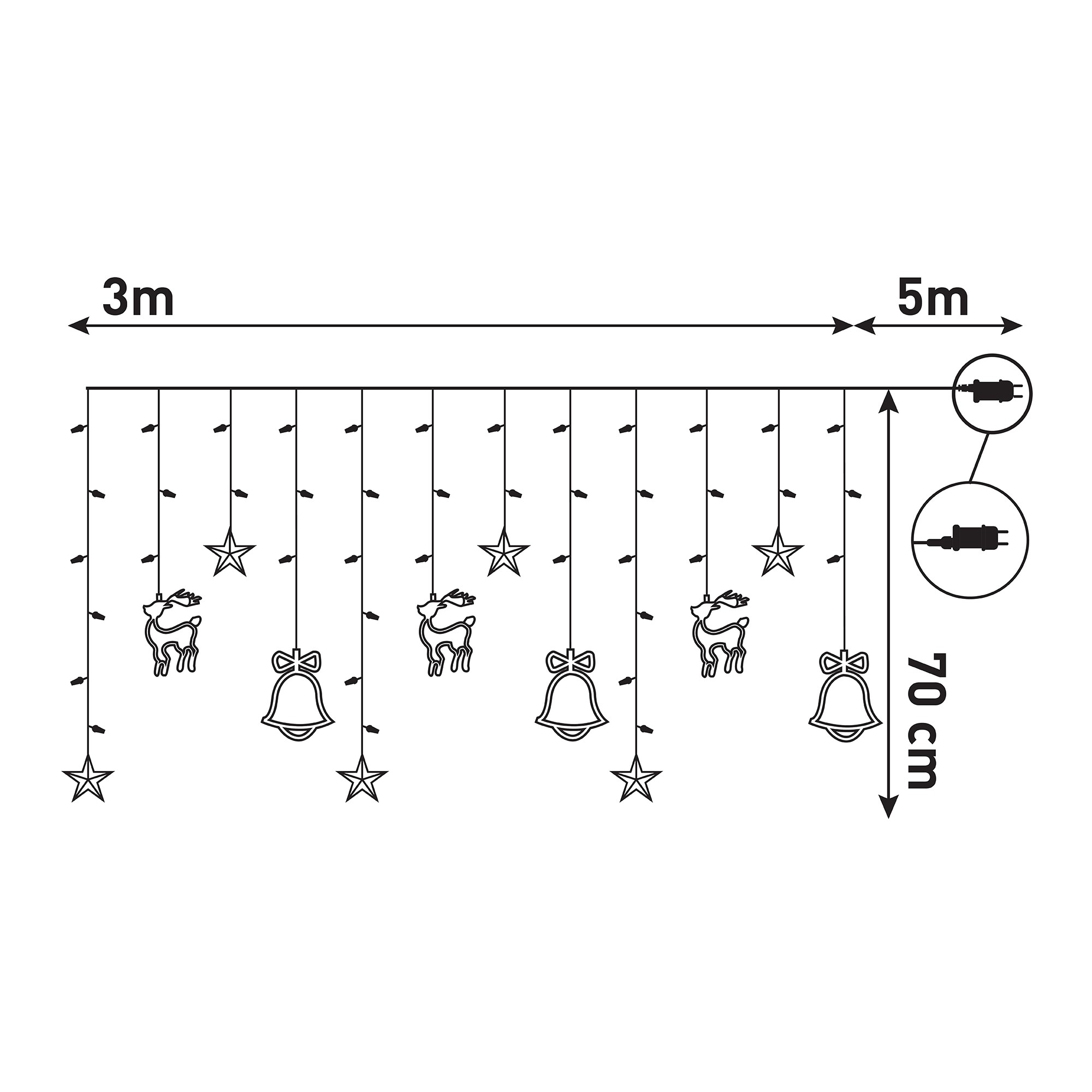 Entac Karácsonyi Függöny IP44 WW 135 LED 12db Dísz Csengő és Rénszarvas 8F + időzítő 3x0,7m IR távirányítóval