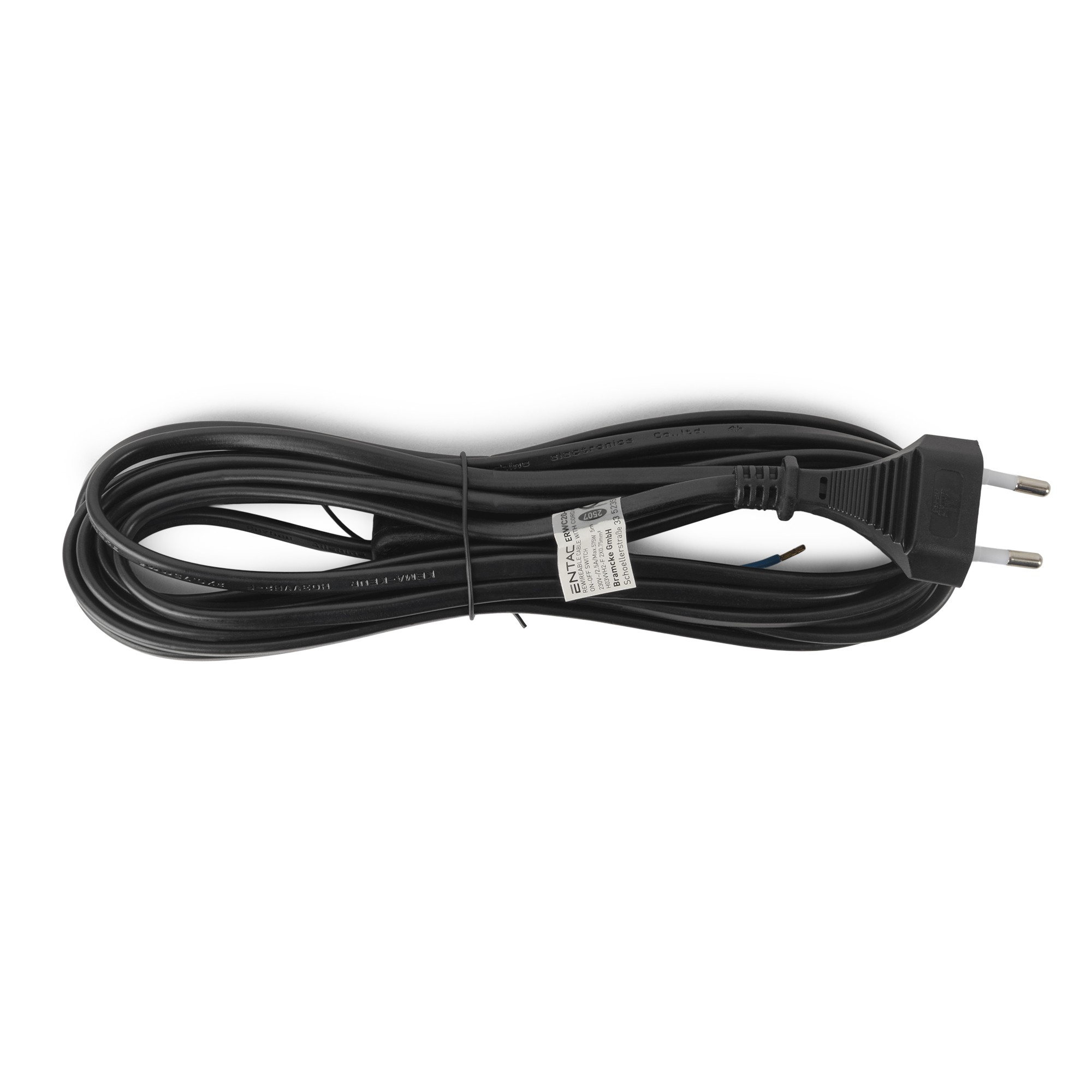 Entac Szerelhető hálózati kábel 2G0.75 5m, Kétállású kapcsolóval, Fekete