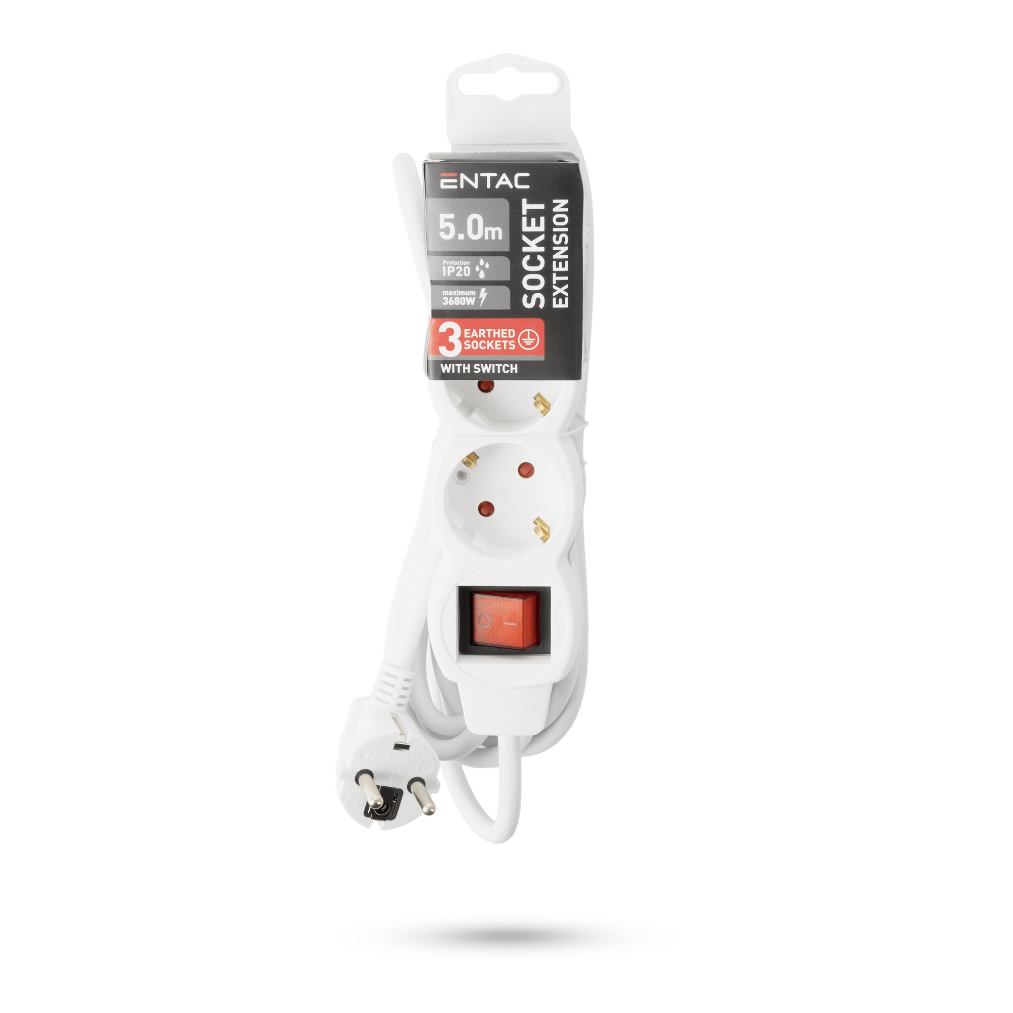 The Entac socket extension with switches are indispensable both at work and home. With their help you can provide electricity for all of your electric devices even if the power source is located further away in the room. Our range includes earthed socket strips with 3 to 6 sockets, 3G1.0 cable type in 1.5, 3 and 5 m lengths, as well as 3G1.5 cable type in 1.5 and 3 meter lengths. With the help of the switch you can disconnect your devices without unplugging them from the power strip.