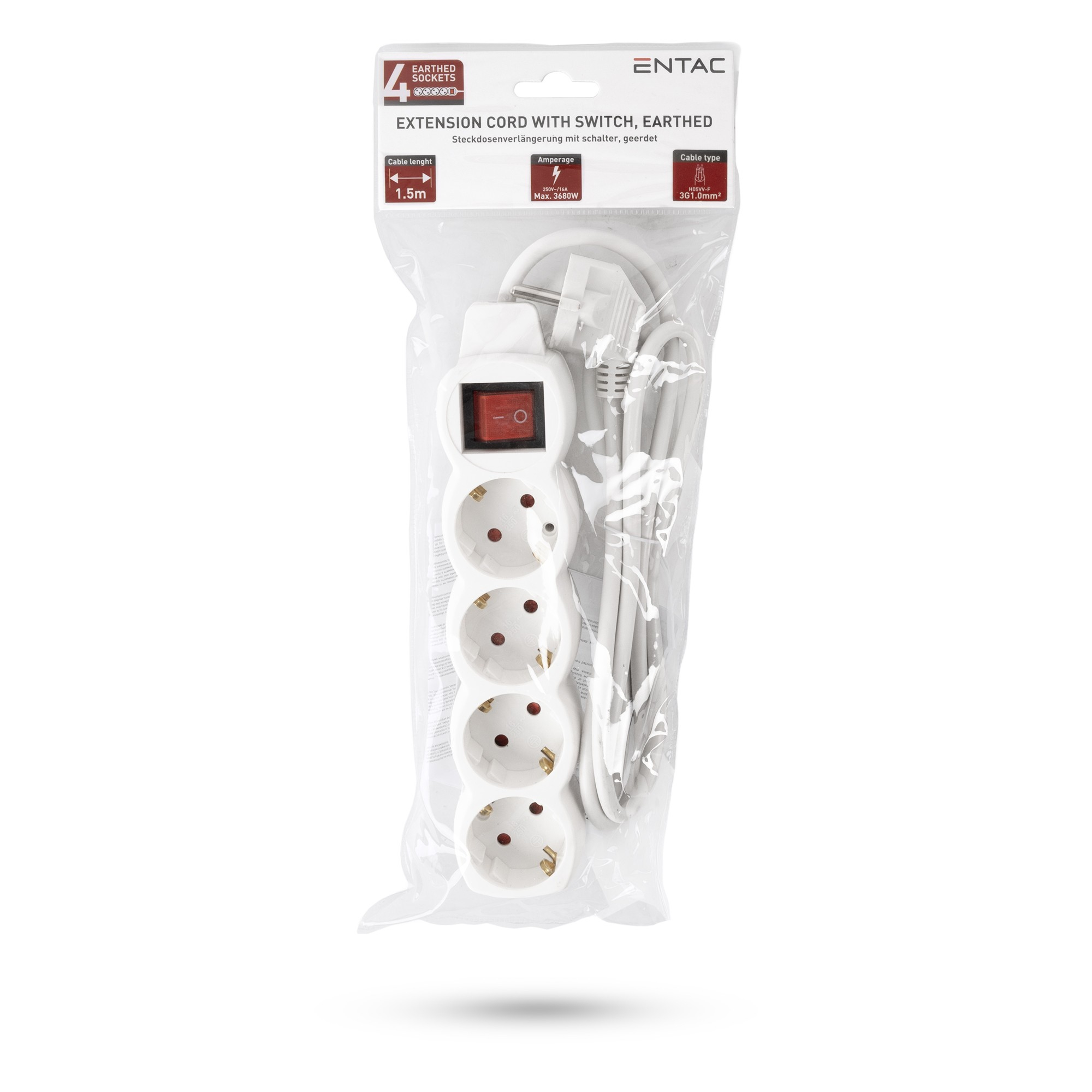 The Entac socket extension with switches are indispensable both at work and home. With their help you can provide electricity for all of your electric devices even if the power source is located further away in the room. Our range includes earthed socket strips with 3 to 6 sockets, 3G1.0 cable type in 1.5, 3 and 5 m lengths, as well as 3G1.5 cable type in 1.5 and 3 meter lengths. With the help of the switch you can disconnect your devices without unplugging them from the power strip.