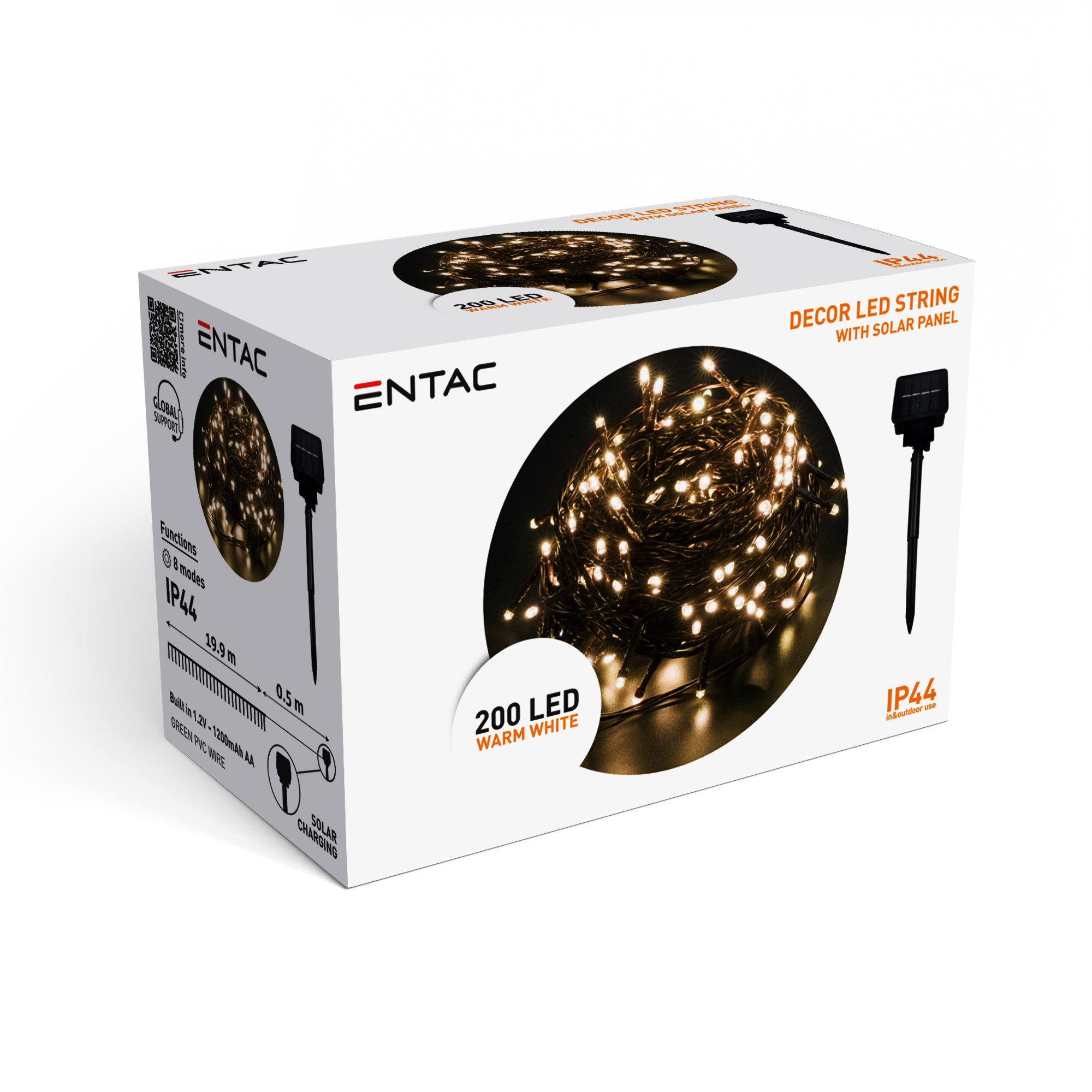 Entac Christmas IP44 200 LED String WW 20,4m with Solar Spike