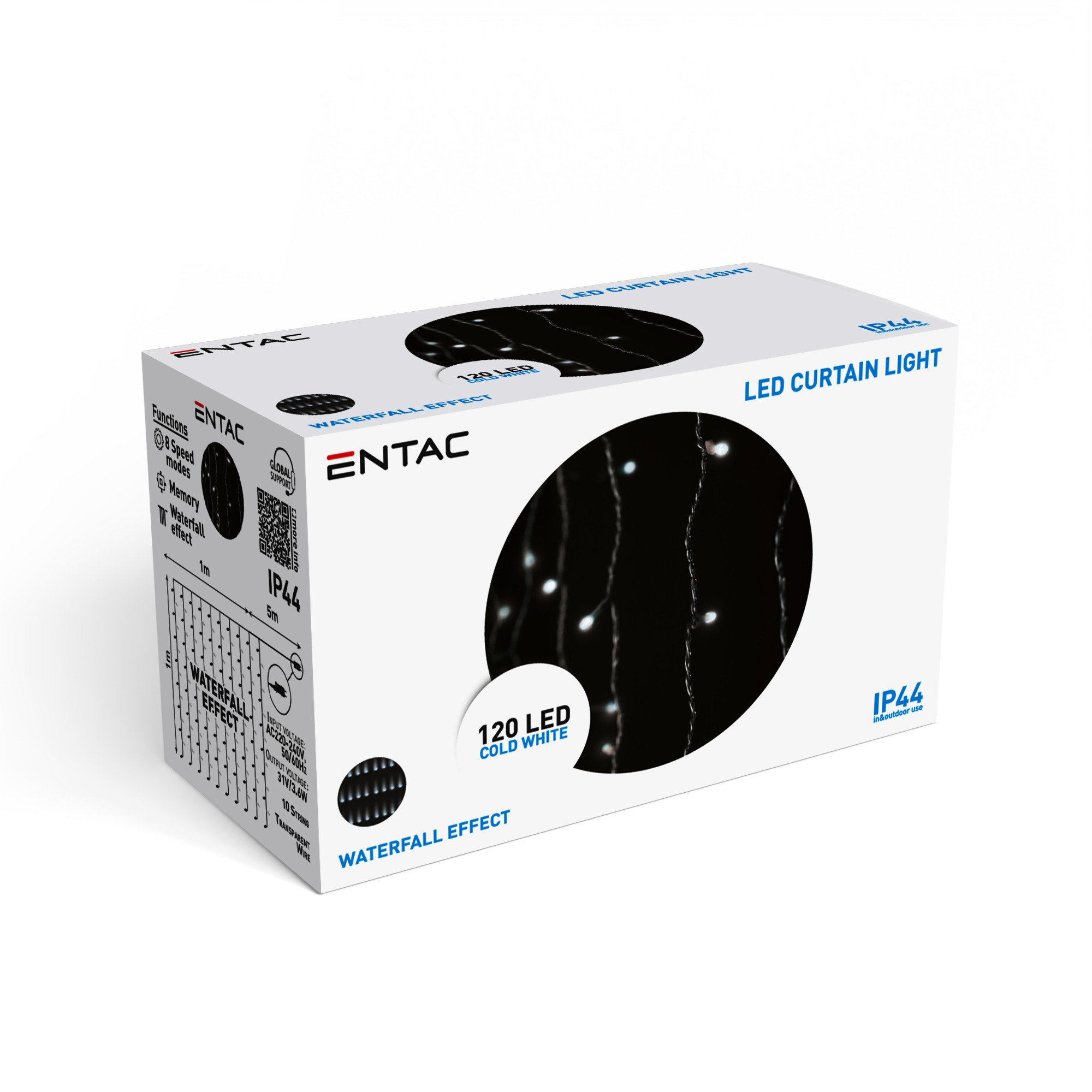 Entac Christmas Curtain Light CW with waterfall effect IP44 120 LED 1x1m with 8F