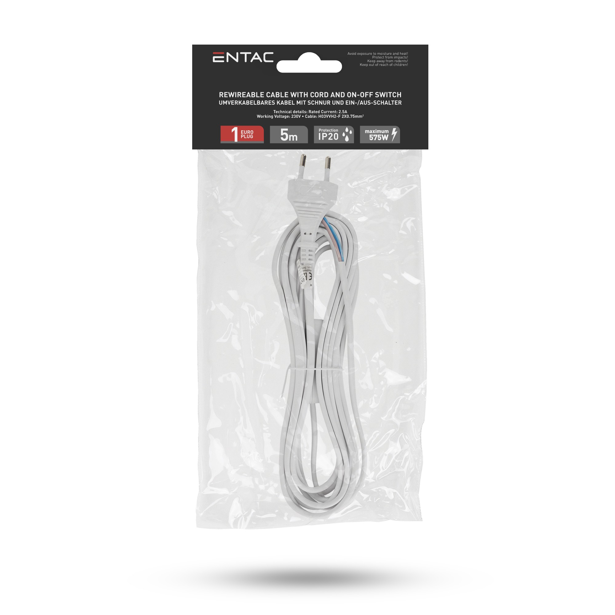 Entac Rewireable Cable 2G0.75 5m with on/off switch, White