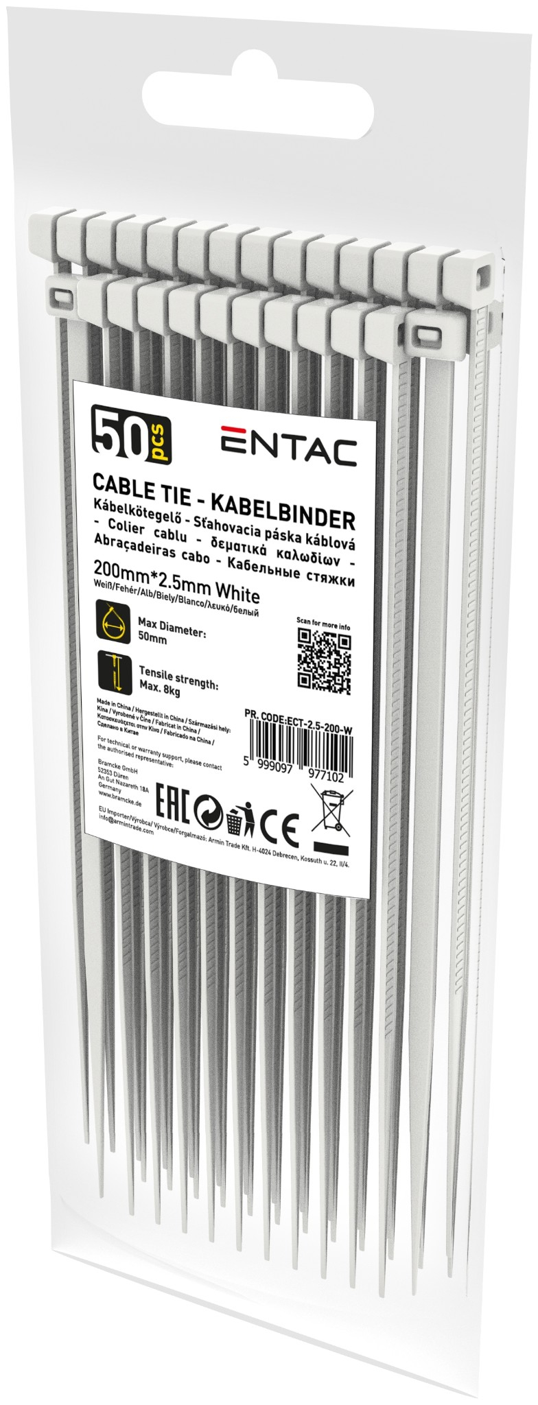 Az Entac kábelkötegelői nagy segítséget nyújthatnak a mindennapokban. Ipari környezetek, műhelyek, háztartások elengedhetetlen kelléke, mely segítségével kellemesebb, praktikusabb környezet varázsolhatunk. Használata gyors és egyszerű. Kábelkötegelőink megtalálhatók fehér és fekete színben, 100-400mm hosszúság és 2,5-4,8 mm vastagság között, különböző méretekben. Teherbírásuk 8 és 22 kg között terjed.