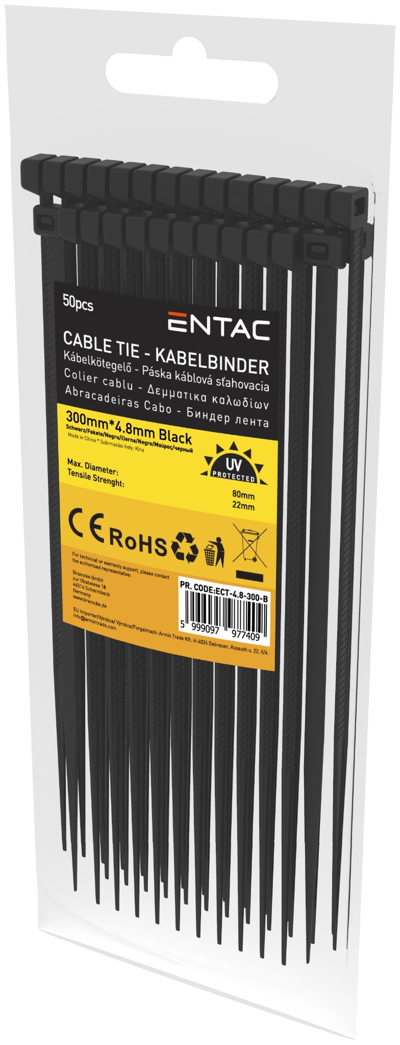 Az Entac kábelkötegelői nagy segítséget nyújthatnak a mindennapokban. Ipari környezetek, műhelyek, háztartások elengedhetetlen kelléke, mely segítségével kellemesebb, praktikusabb környezet varázsolhatunk. Használata gyors és egyszerű. Kábelkötegelőink megtalálhatók fehér és fekete színben, 100-400mm hosszúság és 2,5-4,8 mm vastagság között, különböző méretekben. Teherbírásuk 8 és 22 kg között terjed.
